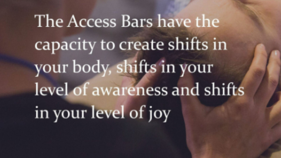 Access Bars, created by Gary Douglas (founder of Access Consciousness), involves the activation of 32 points or “bars” around the head by light touch, which deletes or releases thought patterns that no longer serve a person―patterns involving all areas of one's life (healing, body, control, awareness, creativity, power, aging, money, and more). Each bar is associated with different aspects of one’s life, and each one stores the electromagnetic component of all the thoughts, ideas, attitudes, decisions, and beliefs that a person has ever had about anything. By touching each bar or a combination of bars, the solidified thoughts, feelings, and emotions associated with that aspect of one’s life can be released, and something new can arise.